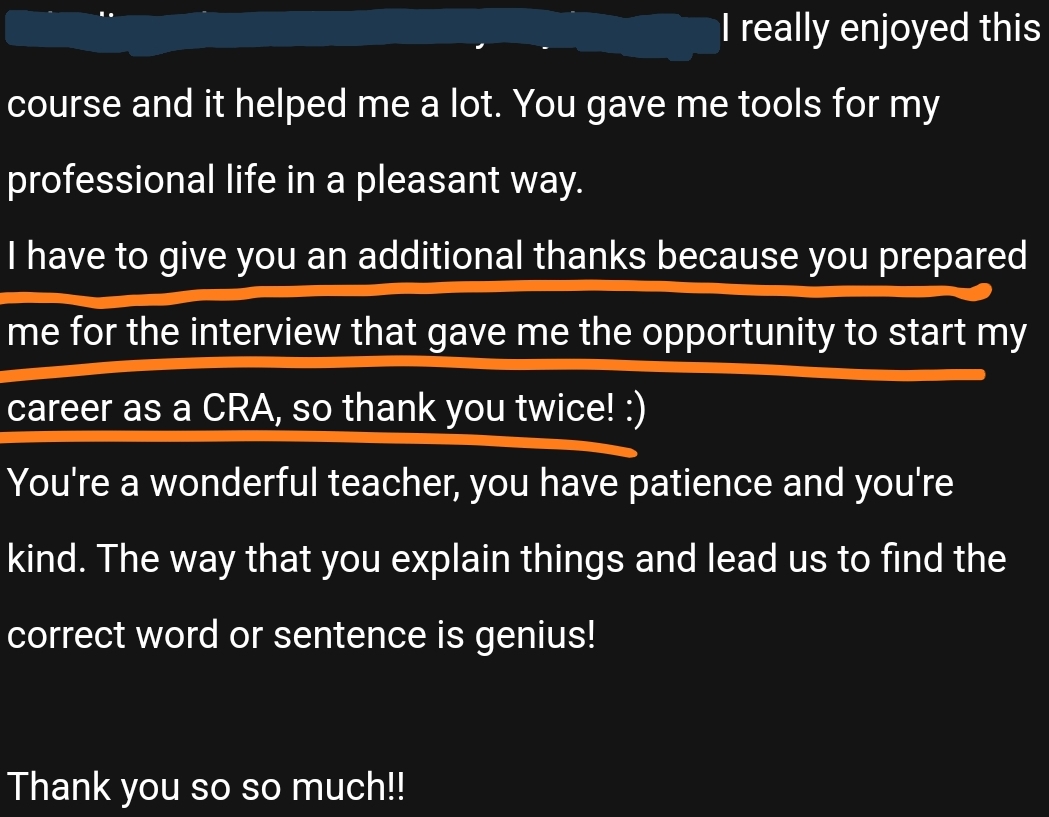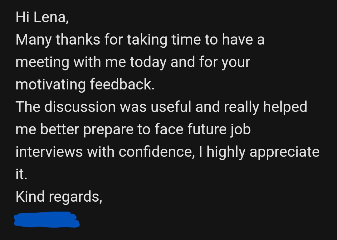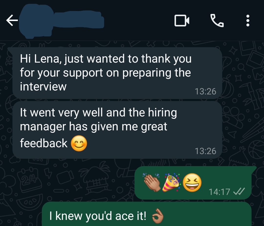Te enviaré el feedback de la sesión para que lo estudies antes de la entrevista.